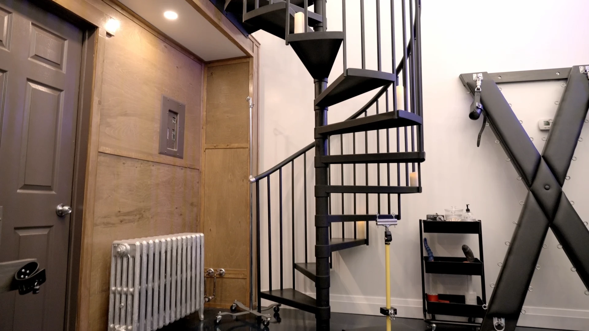 В основе пространства — большая игровая зона и изящная винтовая лестница, ведущая на антресоль с открытой спальней, откуда через балкон просматривается весь зал, позволяя проводить игры одновременно на обоих уровнях. На первом этаже расположены кухня открытой планировки и полноценная ванная комната с просторным душем.